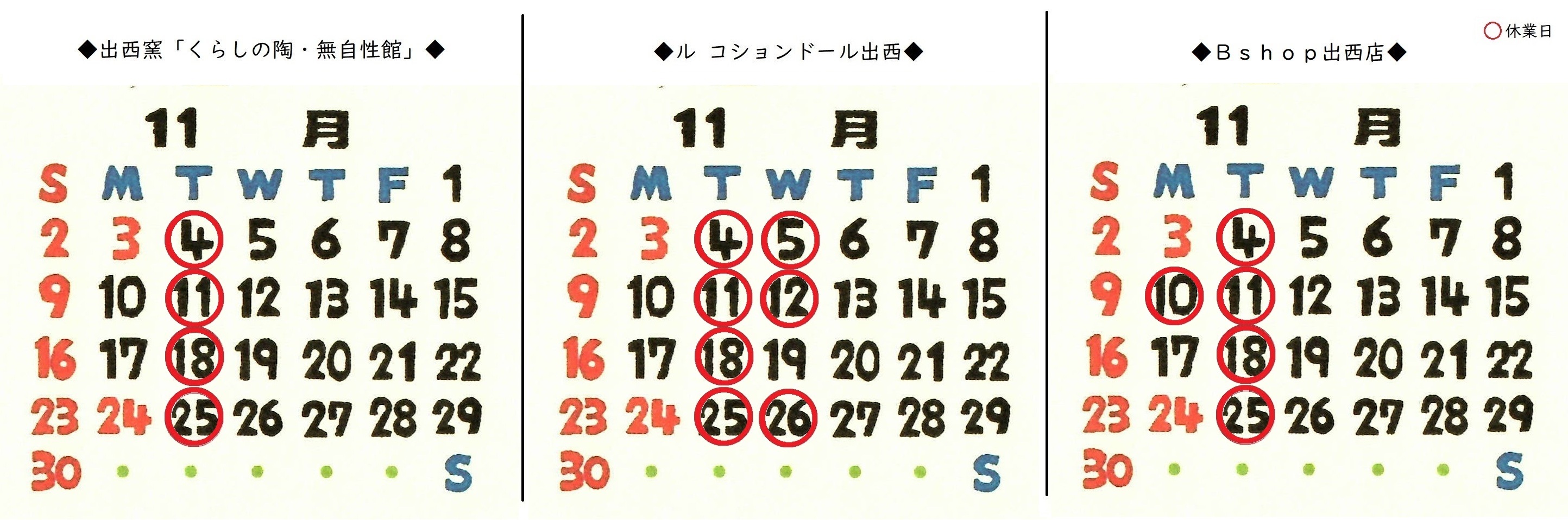 出西くらしのヴィレッジ11月営業日のお知らせ